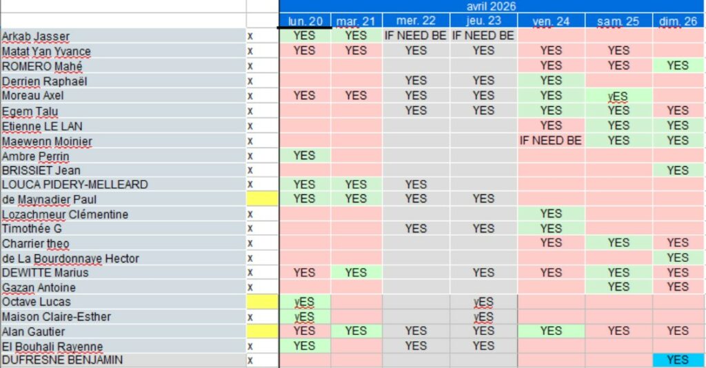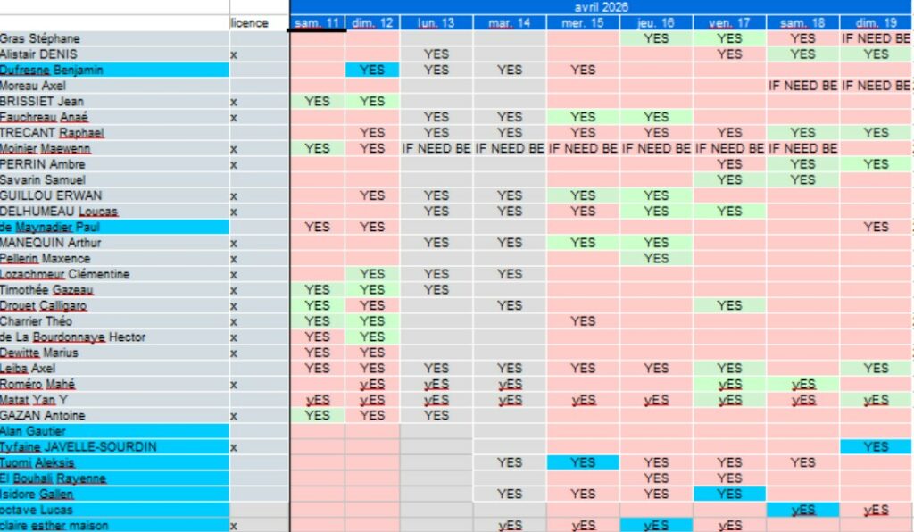 Pour chaque stage, un sondage en ligne (Doodle) permet de se pré-inscrire quelques semaines avant (cf. ci-dessous).